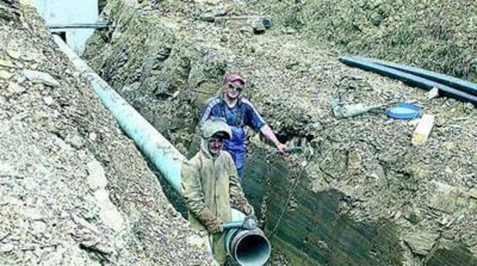 Nach dreißig Jahren haben die Leitungen ausgedient. Korrosion hat den Trinkwasserrohren der Bodenseewasserversorgung auf Metzinger Markung so zugesetzt, dass neue verlegt werden müssen. Die Baustelle wandert von der Baumschule Handel aus weiter.