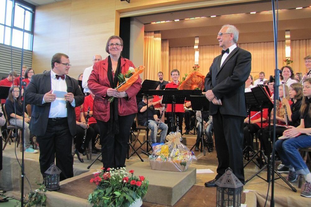 »Man macht’s eben«, sagt Harry D. Barth (rechts) mit Blick auf die zurück- liegenden fünf Jahre. Neue Diri-gentin beim Musikverein Walddorf-häslach ist Claudia Krohmer-Rebmann. FOTO: MÜLLER