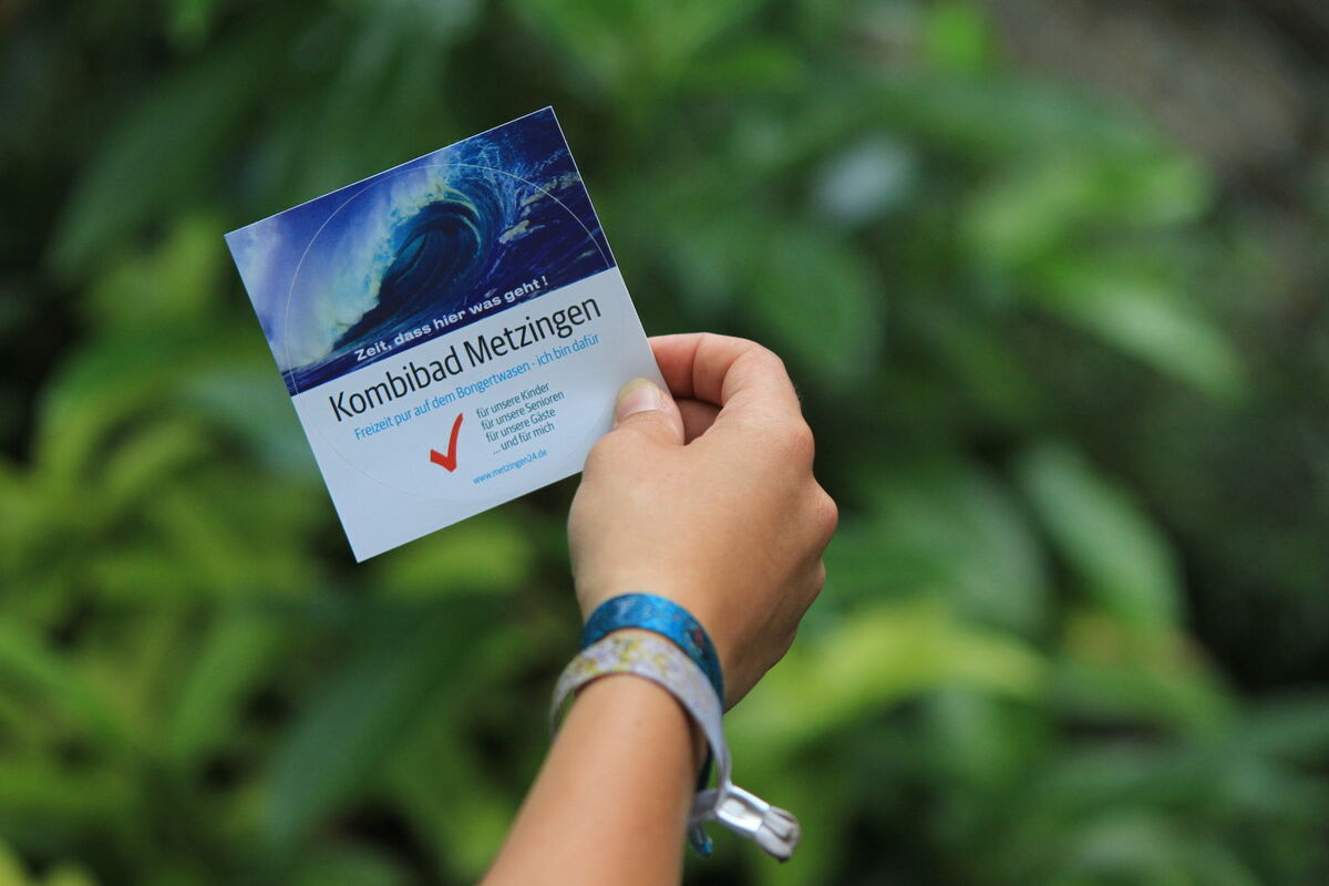 METZINGEN. »Nicht quatschen, bäbben«, hat Manfred Schmid (Neuhausen) die Aktion überschrieben, mit der er sich gegen die »Bürgerinitiative Erhalt und Ausbau der Metzinger Bäder« wendet. Die hat in den vergangenen Wochen nach eigenem Bekunden genügend Unterschriften gesammelt, um ein Bürgerbegehren auf den Weg zu bringen. Damit will die Gruppe um Gertrud Kleineikenscheidt, Dieter Ernst und Dr. Friedrich Lorch einen Bürgerentscheid erzwingen, der den Gemeinderatsbeschluss zum Kombibad vom 17. Mai kippen soll.