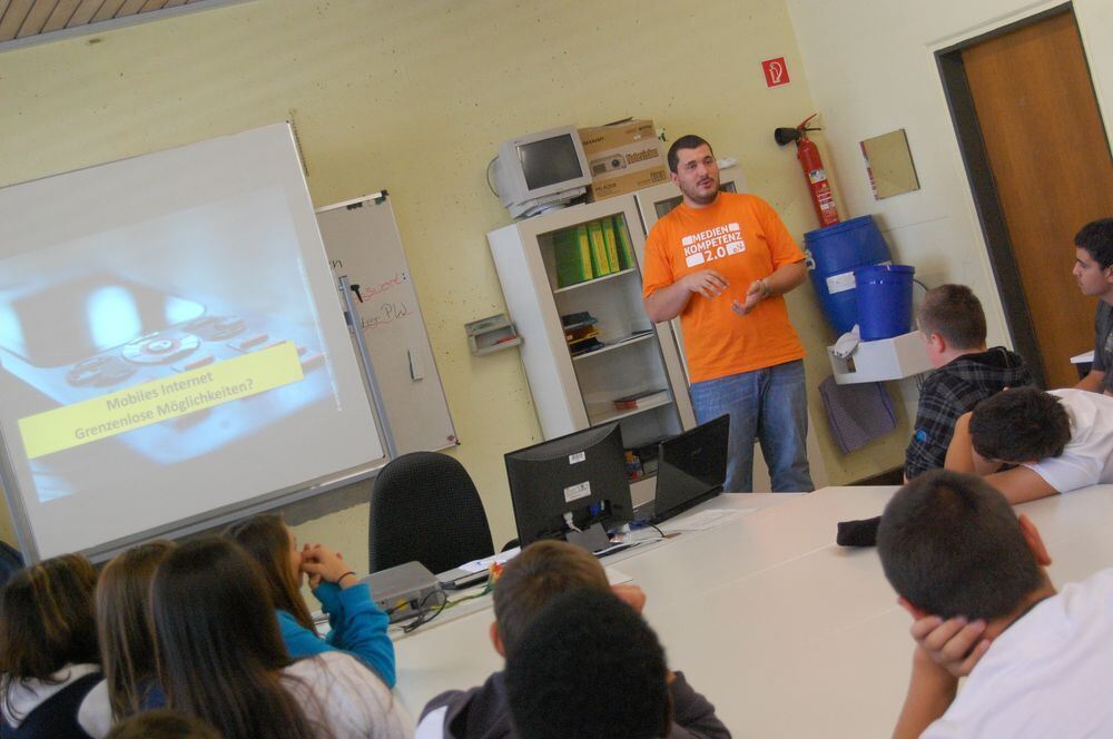 »Was tun gegen Cyber-Mobbing?« - »Profil des Mobbers löschen!«: Neuntklässler im Workshop mit Felix Ebner (hinten).