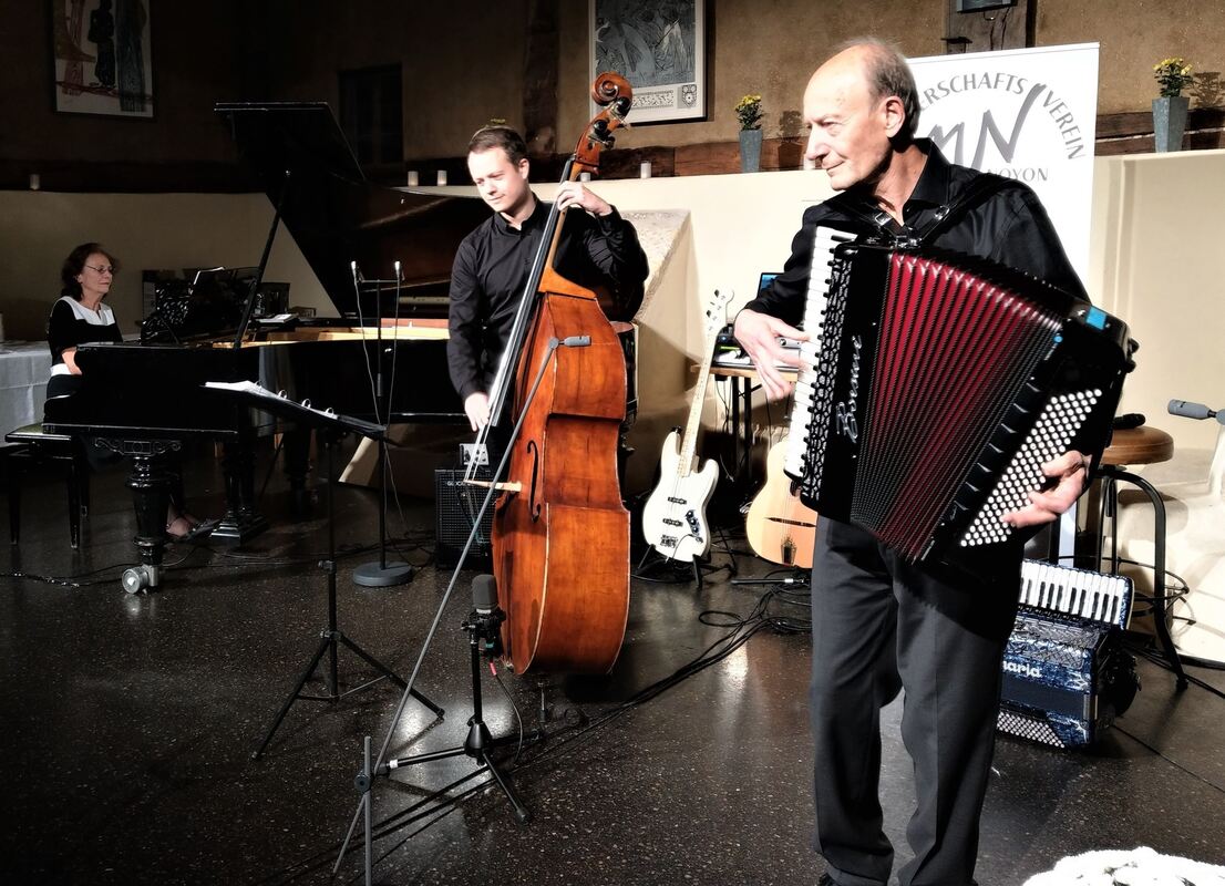 »Pigalle«, »Rue Parisienne« und »Mademoiselle de Paris« waren Walzer, die es schwer machten, auf den Stühlen sitzen zu bleiben. Meisterhaft wurde das Akkordeon von Alexander Gleim auf Bass und Cello sowie bei manchen Stücken auch von seiner Mutter Lydia Gleim auf dem Flügel begleitet.