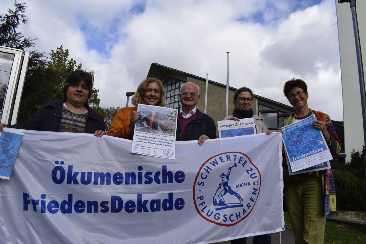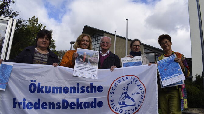 Der Arbeitskreis Frieden ist bei den Metzinger Friedenswochen nicht nur voll dabei, sondern hat auch sehr viel organisiert: Patricia Stasch, Svetlana Letzgus, Pfarrer Hermann Weiß, Karin Berkemer und Susanne Bernauer (von links). Foto: Rittgeroth