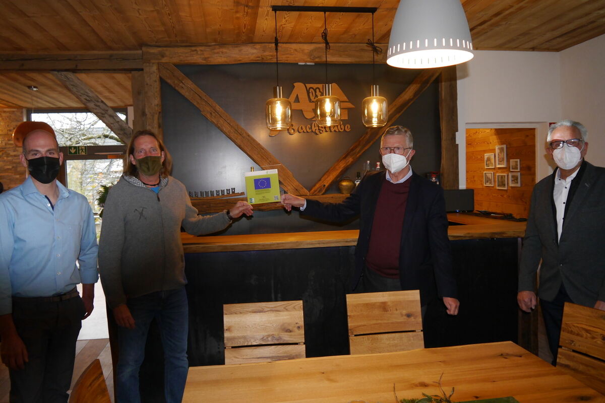 Werner Huber ist seit vielen Jahren engagiertes Mitglied im Leader-Beirat Mittlere Alb und entscheidet innerhalb dieses Gremiums über die Auswahl von Förderprojekten. »Ich freue mich sehr, dass unsere Leader-Aktionsgruppe Mittlere Alb in Erkenbrechtsweiler neben der Renovierung des Backhauses durch die Gemeinde auch die beiden Existenzgründer Hannes Runknagel und Alexander Reuß in ihrem Vorhaben finanziell unterstützen kann. Ich bin begeistert von der neuen gastronomischen Begegnungsmöglichkeit, welche das Dorfleben bereichert und unsere Gemeinde attraktiver macht. So wie es in diesem Gebäude bereits in den Fünfzigerjahren mit dem Café Wurster war. Damals wie heute ein Ort der Begegnung, der Geselligkeit und des Zusammenfindens«, erzählt Werner Huber.