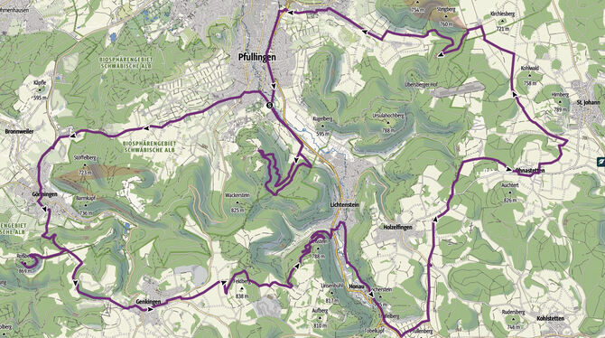 Der Rundkurs nimmt mehrere Albaufstiege mit. KARTE: OPENSTREETMAP