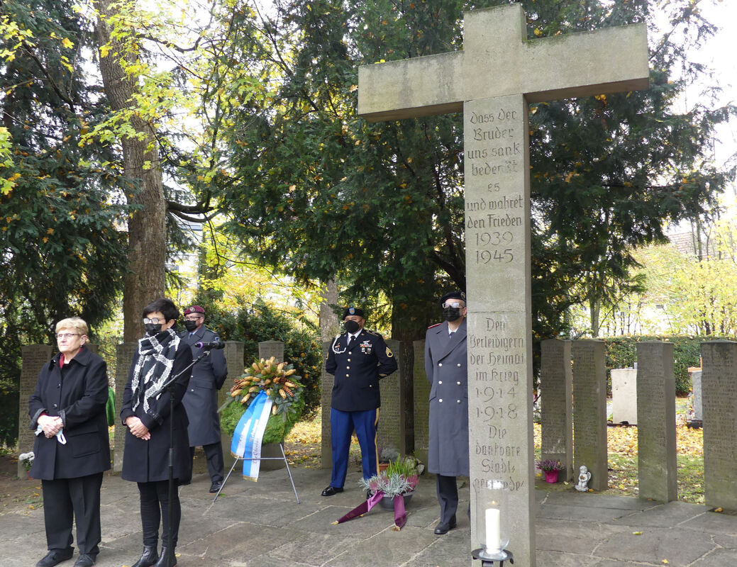 Auf die Frage »Wozu sind Kriege da?« gebe es nur »bescheuerte Gründe«, denn »keiner will sterben«. Keine Mutter wolle ihr Kind und keine Frau ihren Mann verlieren. Nachdenklich machte die Rede von Oberbürgermeisterin Carmen Haberstroh vor der Kranzniederlegung am Ehrenmal, zusammen mit Vertretern des VdK, der Reservistenkameradschaft Ermstal sowie Vertretern der amerikanischen Streitkräfte. »Genau vor 80 Jahren, im Jahr 1941, wurde der von Deutschland losgetretene Krieg endgültig zum Weltkrieg«, erinnerte sie. »Leider hatte damals in Deutschland niemand die Kraft und die Macht, um Adolf Hitler und sein menschenverachtendes Regime aufzuhalten.«