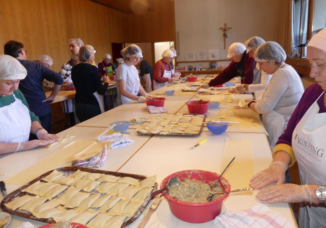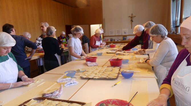 Gemeinsam Maultaschen nach Familienrezept herzustellen, macht nicht nur Mitgliedern der Kolpingsfamilie Freude. FOTO: SANDER