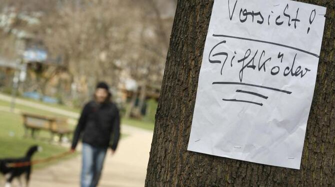 Ein Zettel warnt in einem Park vor ausgelegten Giftködern (Archivbild)