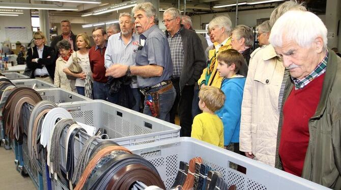 Das Interesse am Gürtelhersteller Bazlen war riesig. Die Überraschung über das, was dahintersteckt noch mehr. Gerhard Bazlen (Mitte) wusste viel Interessantes über sein Metier zu erzählen. FOTO: KOZJEK