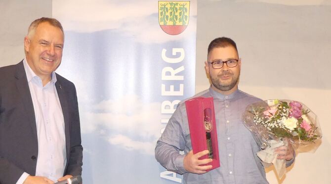 Bürgermeister Volker Brodbeck (links) mit dem neuen Kämmerer Luigi Sileo.  FOTO: SANDER