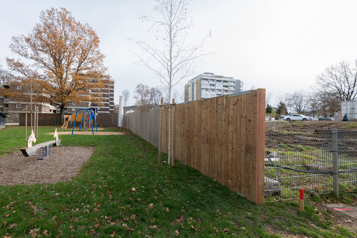 Jetzt sind die Grenzen zwischen Baustelle und städtischem Kindergarten wieder korrekt gezogen. Laut offizieller Sprechweise hatte es eine versehentliche Grenzverschiebung gegeben. Im Klartext: Der Bauzaun wurde so gezogen, dass der Spielplatz auf dem Baugelände lag.