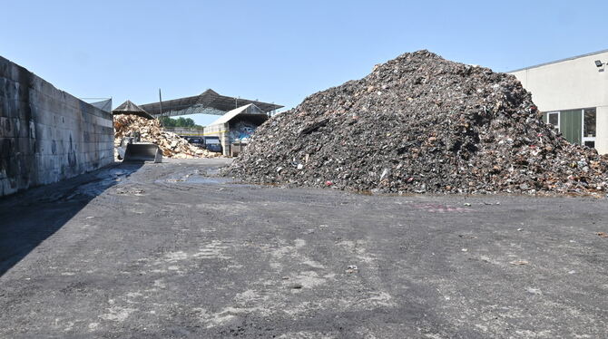So sieht es einen Tag nach dem Großbrand bei Alba in Metzingen aus: ein Haufen Brandschutt, schwarze Mauern und schlammiger Untergrund.