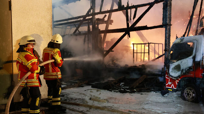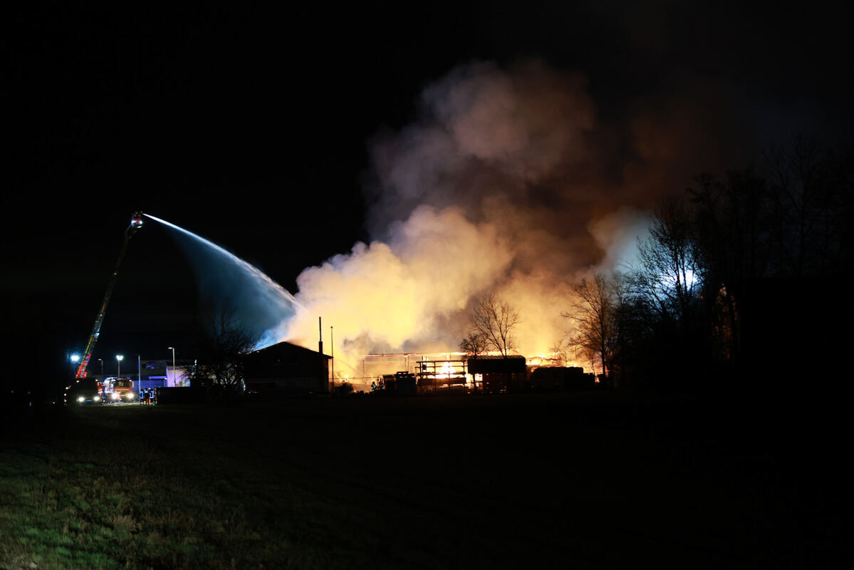 Es handelt sich um eine Industriehalle aus Holz - von der nach dem verheerenden Feuer nicht mehr viel übrig ist. »Die Halle ist zu 80 Prozent abgebrannt«, berichtet Holder. Die Brandursache sei noch »völlig unklar«, so die Auskunft des Polizeiführers vom Dienst. Die Bundesstraße war teilweise gesperrt, was zu Rückstaus führte. Auch ein Polizeihubschrauber war im Einsatz.