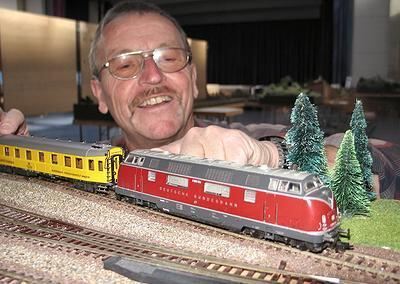 Minizüge lassen nicht nur Männerherzen höher schlagen: Walter Buck an einer von 18 Anlagen, die in Hülben zu sehen sind.