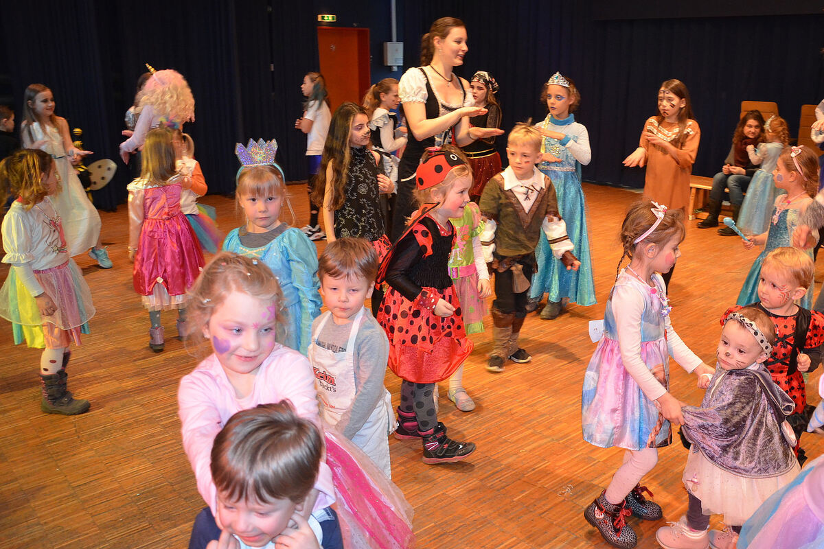 Buntes Treiben beim Kinderfasching in der Gutenberghalle in Riederich. Viele Ritter, Marienkäfer und Burgfräuleins mussten das Tanzen nicht groß lernen. FOTOS: SANDER