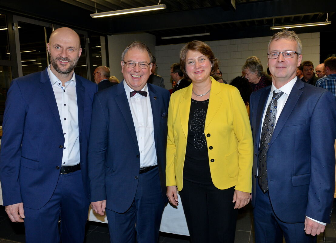 Die »Promis« beim Neujahrsempfang des Gewerbevereins in Walddorfhäslach: (von links) Michael Necker, der Vorsitzende des Gewerbevereins, der Reutlinger OB Thomas Keck, Walddorfhäslachs Bürgermeisterin Silke Höflinger und Jochen Tribusser, stellvertretender Vorsitzender des Gewerbevereins.
