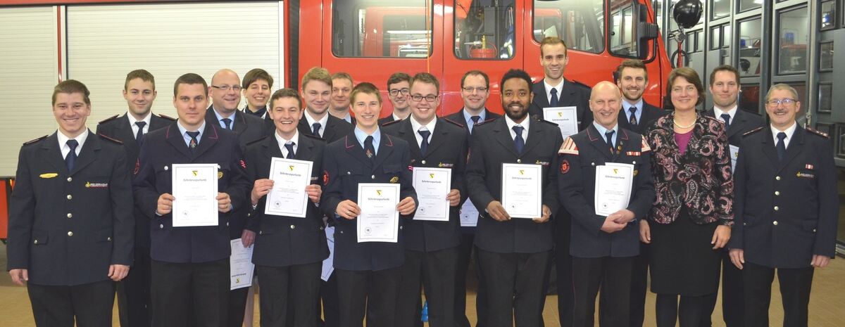 Beförderungen bei der Feuerwehr Walddorfhäslach mit Bürgermeisterin Silke Höflinger. FOTO: FEUERWEHR