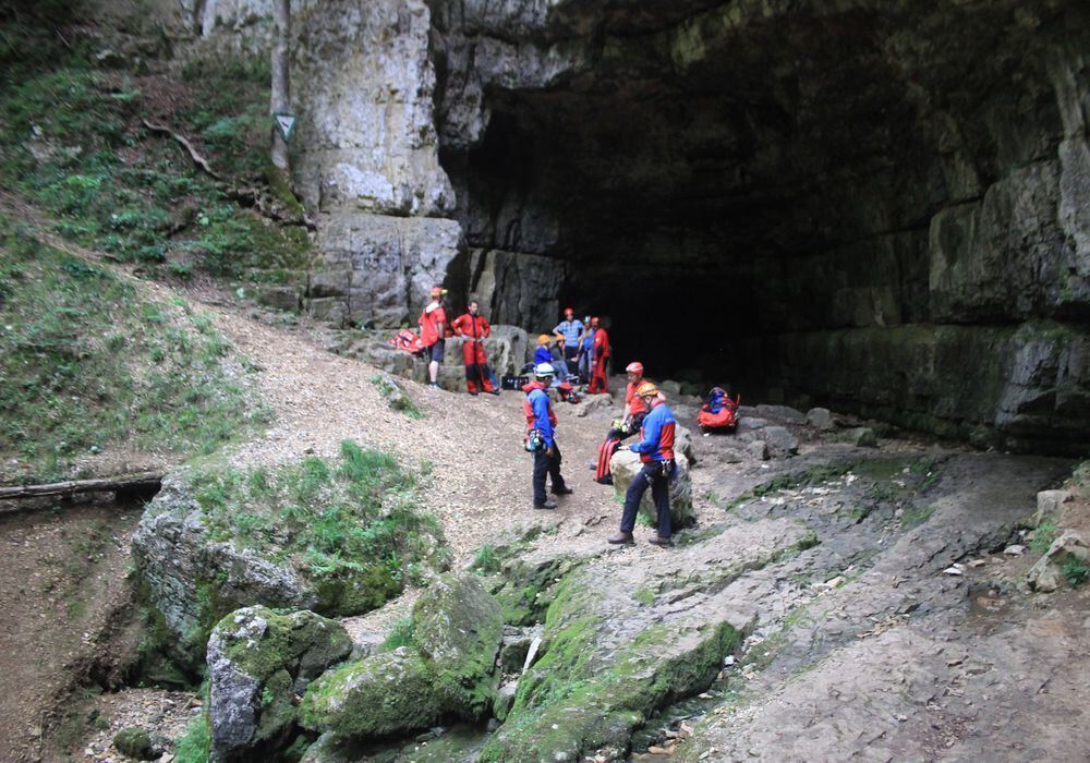 An der Rettungsaktion waren Helfer der Höhlenrettung, der freiwilligen Feuerwehr, des DRK und der Bergwacht beteiligt. Foto: 7ak