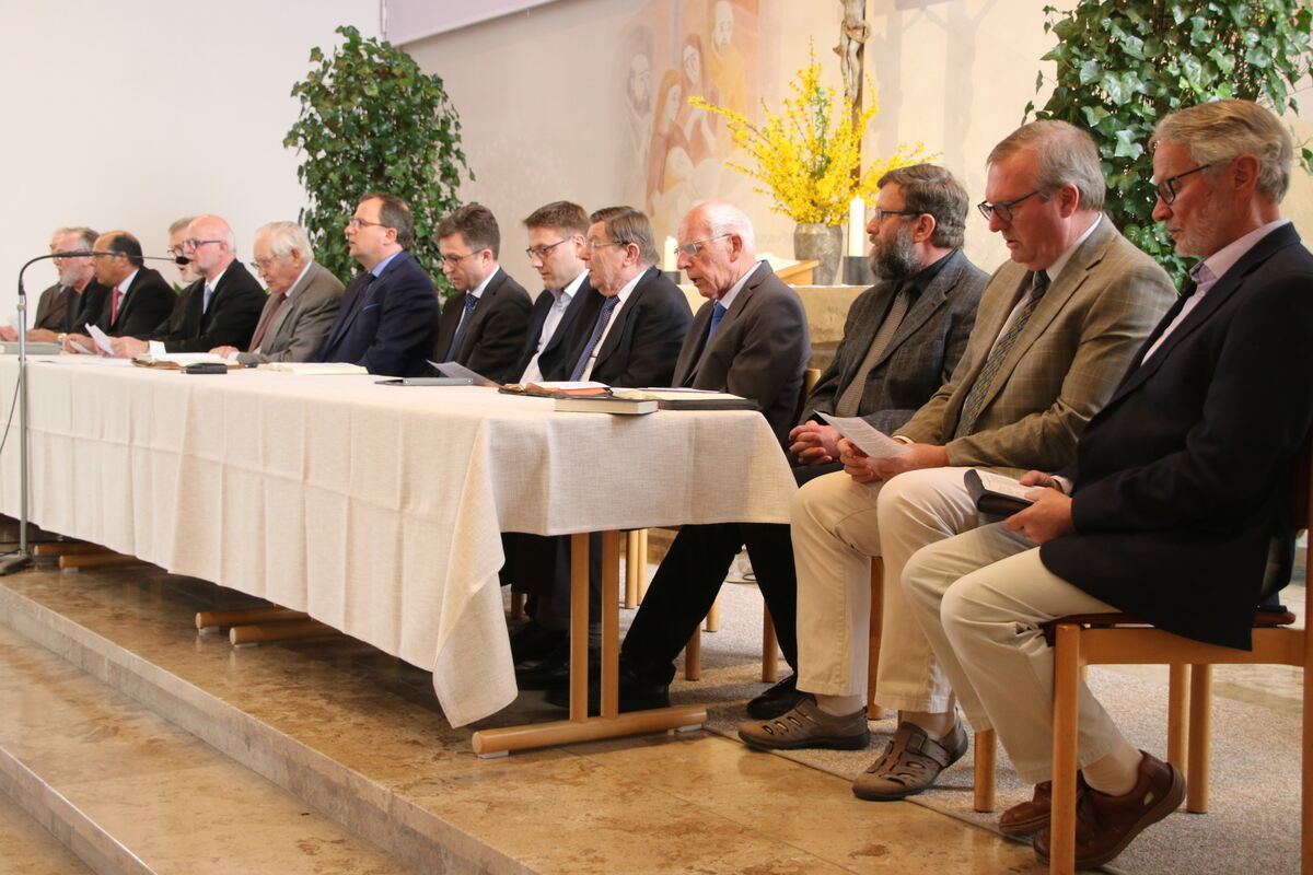 »Jubiläumsstunde« in der Christuskirche: Laien und Pfarrer legen den Psalm 62 aus – drei Minuten haben sie jeweils Zeit. FOTO: OECHSNER