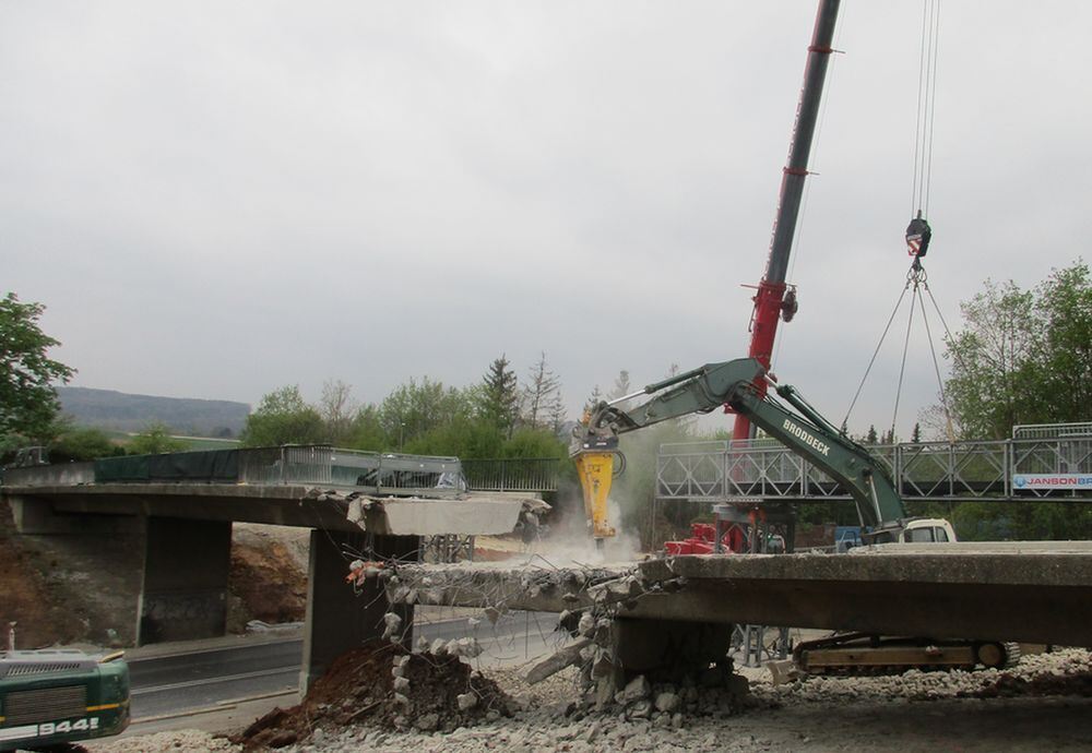 Abriss der alten Feldwegbrücke über die B 312 bei Neckartenzlingen. Laut Regierungspräsidium Stuttgart liegen die Arbeiten voll im Zeitplan. FOTO: RP STUTTGART, KONRAD BADER