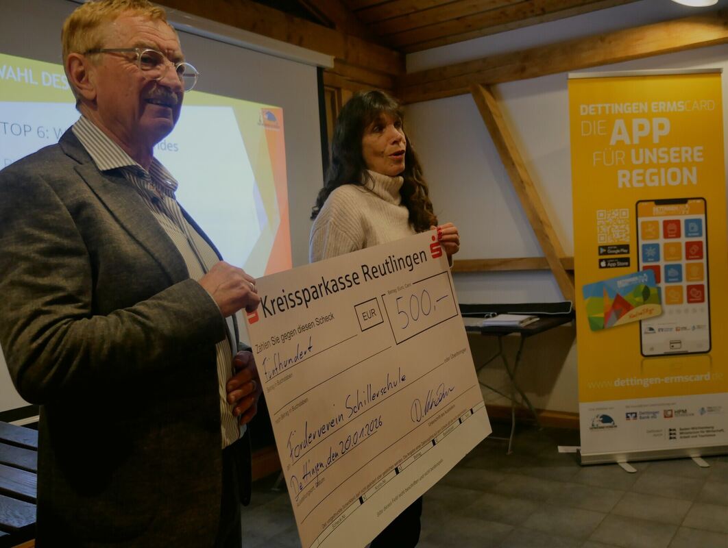 Eine Spende in Höhe von 500 Euro überreichte Rolf Hägele vom Gewerbeverein an Ulrike Müller für die Schulsozialarbeit an der Schillerschule.