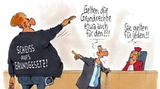 BAD URACH. Zum 75. Geburtstag des Grundgesetzes zeigt die Landeszentrale für politische Bildung Baden-Württemberg (LpB) in ihrem Tagungszentrum »Haus auf der Alb« die Ausstellung »Die Würde des Menschen ist unantastbar«. Sie umfasst 24 Karikaturen des vielfach ausgezeichneten Karikaturisten Gerhard Mester. Vom 15. Februar bis 29. Mai ist sie in Bad Urach zu sehen. Am 23. Mai 1949 wurde das Grundgesetz für die Bundesrepublik Deutschland verkündet. Den darin verankerten Grundrechten (Artikel 1 bis 19) kommt eine besondere Bedeutung zu: Sie sind unveräußerlich und unteilbar.