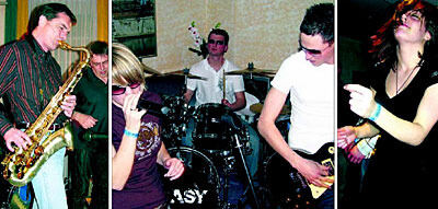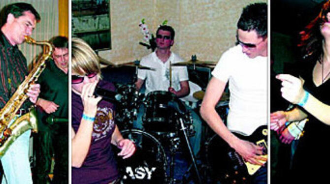 Musiknacht in der Innenstadt: links der Saxofonist der Reutlinger Rock- und Bluesband Rough Enough, Mitte Coasy, rechts eine begeisterte Mitmacherin.