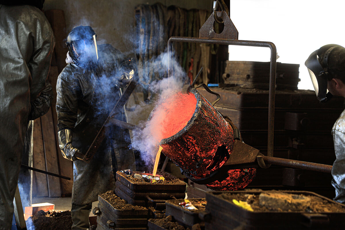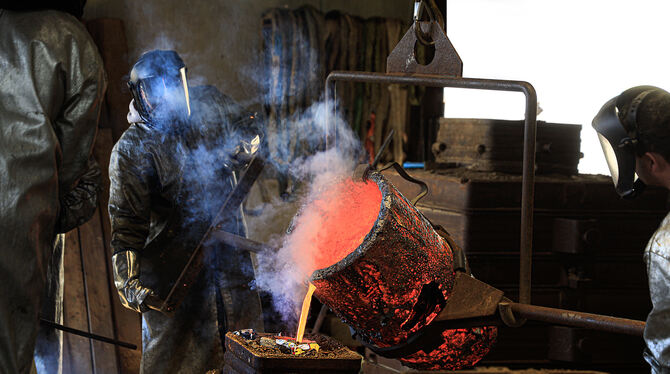 Eine Delegation vom Dettinger Heimatmuseum war beim Gießen von zwei Glocken dabei, die werden die ausgestellt Uhr der Uhlandschule vervollständigen