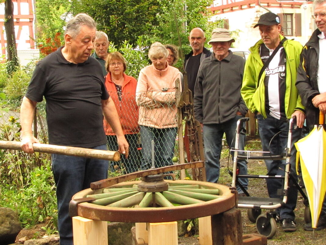 Hans Dürr demonstriert am Tag des offenen Denkmals an einem Wagenrad die Handwerkskunst von Schmiedemeistern in früheren Zeiten.