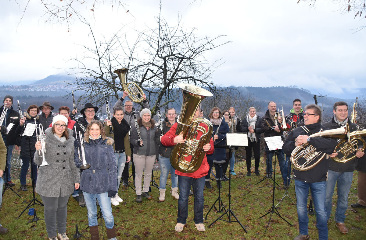 Zum Jahresbeginn gab es oben auf dem Grafenberg wieder das Silvesterblasen, eine Tradition, die inzwischen die junge Generation des Musikvereins übernommen hat: Gespielt wird bei jedem Wetter. FOTO: SANDER