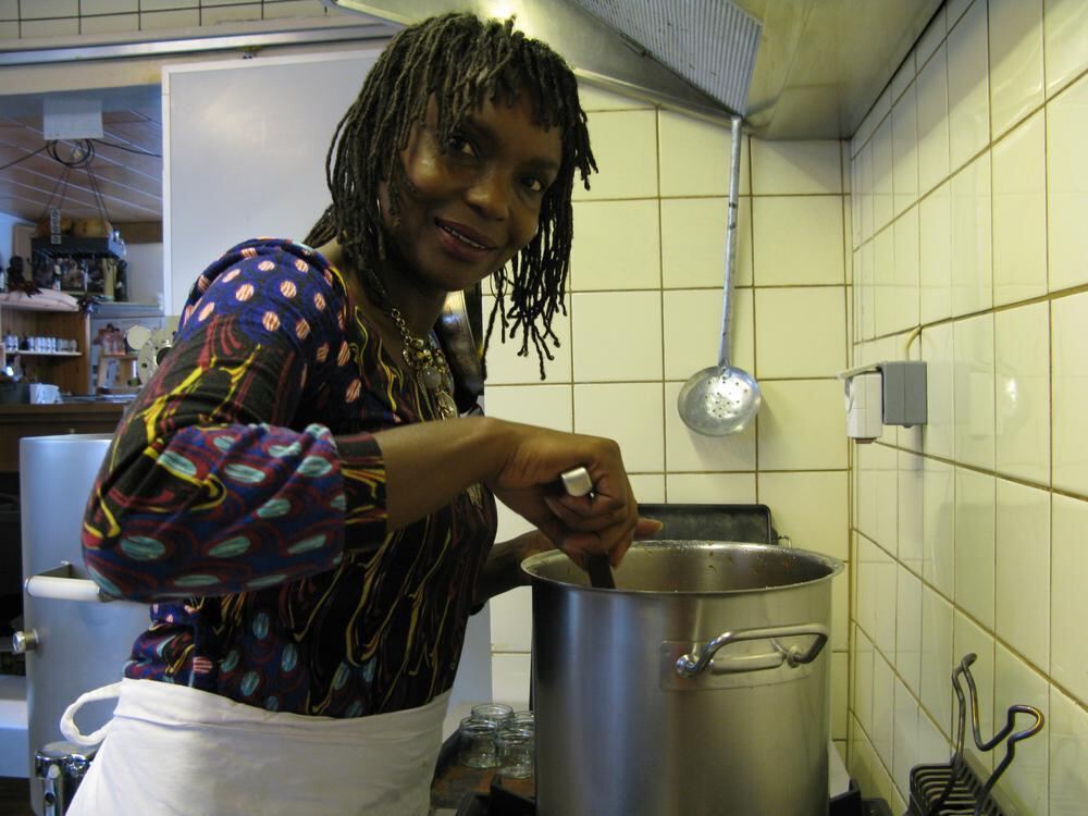 Njeri Kinyanjui in ihrer Küche in Walddorfhäslach. Weil der Obstlieferant so viele Ananas im Angebot hatte, kocht die gebürtige Kenianerin Marmelade davon.