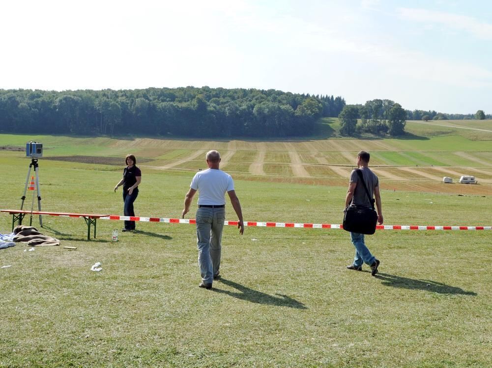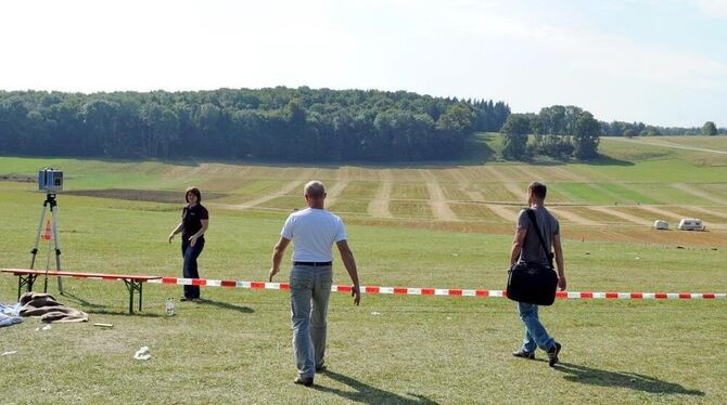 Kriminaltechniker haben gestern den Unglücksort vermessen: Links die Stelle, wo der Mann gestorben ist.