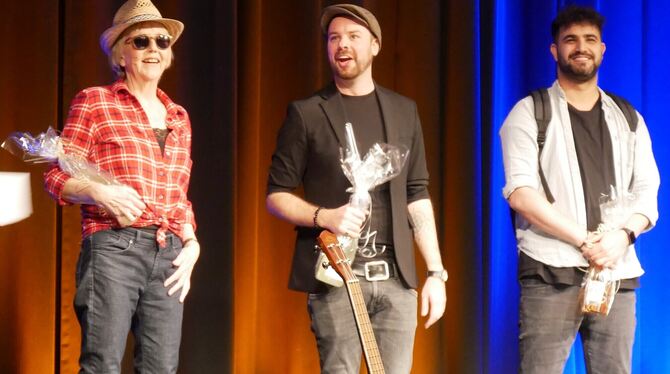 Marianne Schätzle, Bene Reinisch und Amjad (rechts) begeisterten am Freitagabend das Publikum in der Metzinger Stadthalle.