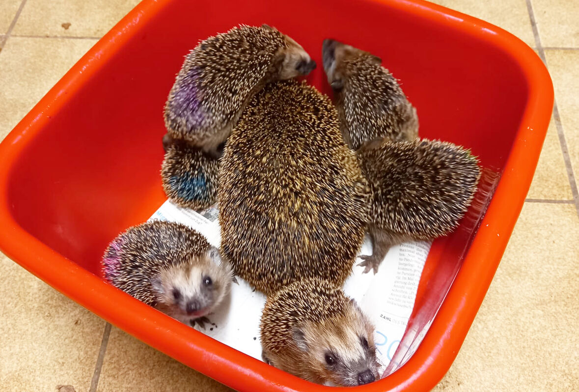 Auch eine ganze Igelfamilie ist kürzlich in der Station untergekommen: Eine Mama, die kurzerhand »Mami« genannt wurde, und mit ihr gleich acht Babys. Die Mutter war stark unterernährt. »Ich habe noch nie einen Igel so hastig essen gesehen«, berichtet sie von der ersten Fütterung mit Katzenfutter.