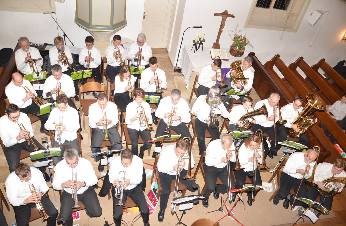 Der Posaunenchor des CVJM brachte das Thema »lebendiges Wasser« in die evangelische Kirche Walddorf. FOTO: SANDER