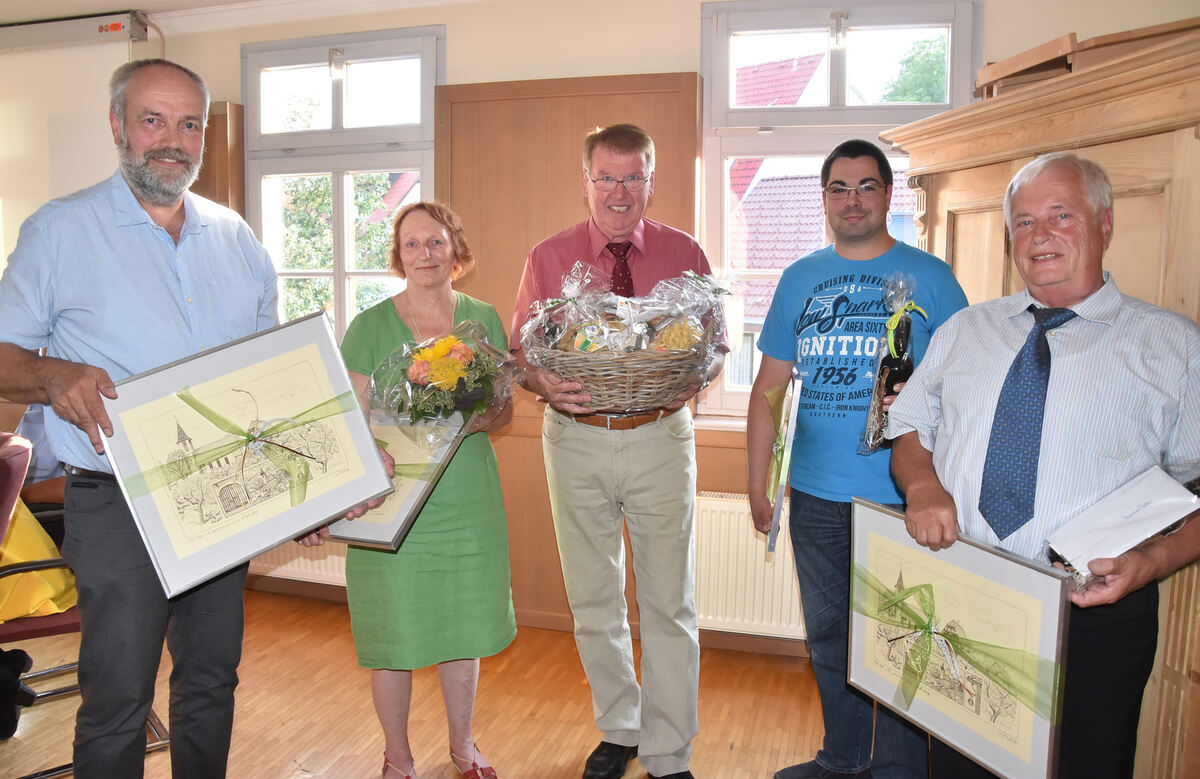 Marco Hellmig habe in seiner fünfjährigen Amtszeit über 600 Tagesordnungspunkte entschieden und sei als stellvertretender Feuerwehrkommandant und DRK-Helfer vor Ort ein »Fachmann für Sicherheit«. Manfred Knöll war außergewöhnliche 44 Jahre Gemeinderat und hatte mit rund 6 500 Tagesordnungspunkten viel Lesestoff zu bewältigen. Mit ihm gehe außerdem fundiertes Wissen aus dem Gremium, denn Knöll kenne sich gut mit der Historie des Ortes aus. »Wir waren oft nicht einer Meinung«, sagte Vorwerk. Es sei aber hinterher immer ein gutes Miteinander möglich gewesen, zog Vorwerk eine Bilanz der Zusammenarbeit.