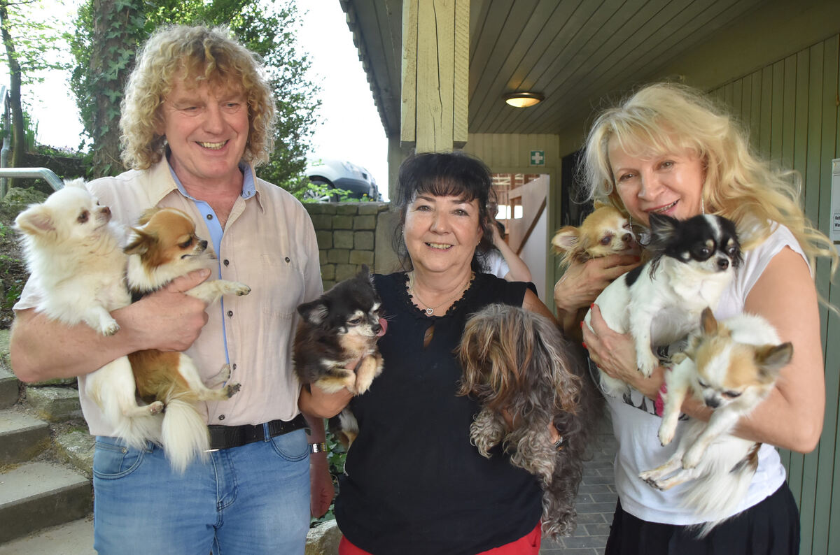 Fünf Hände voll Chihuahua und ein Bolonka, gezeigt von Michael Kraft, Vorsitzender des Mittelbadischen Rassehundeclubs, Ehefrau Gabriela (rechts) und Bea Damm. FOTO: SANDER