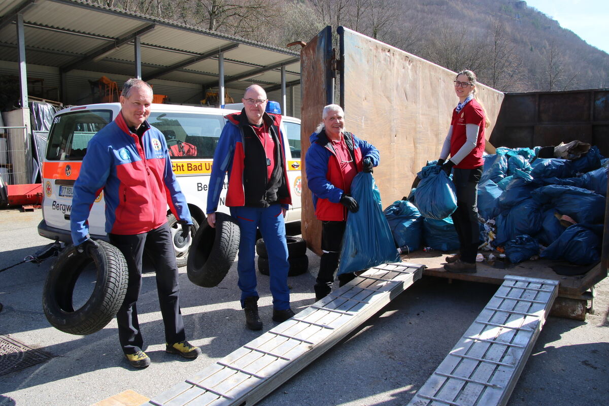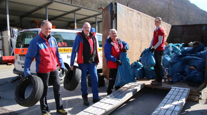 Die Mitglieder der Bergwacht waren auf dem Hohen Urach im Einsatz und hatten sich an verschiedenen Stellen abgeseilt, um den Müll anderer einsammeln zu können.