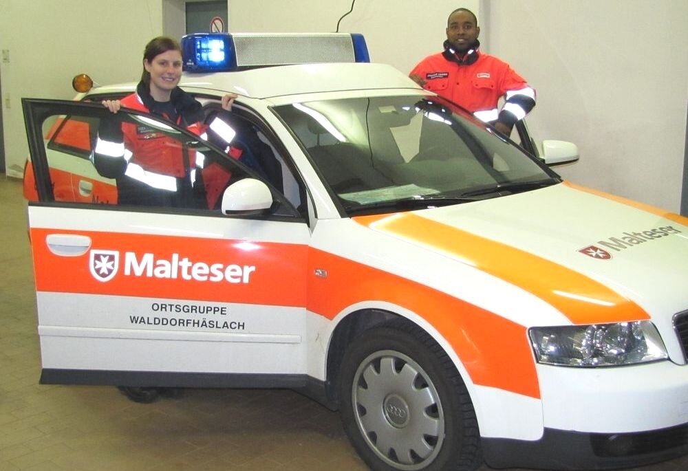 Enza Guarnieri und Jonathan Krämer von der Helfer-vor-Ort-Gruppe in Walddorfhäslach. FOTO: MÜLLER