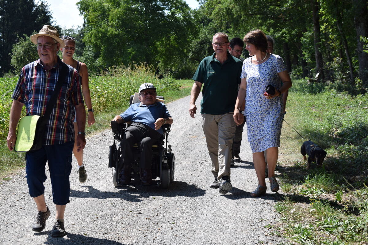 Am Dienstagnachmittag wurde der erste der 13 Wanderwege am Rand des Naturparks Schönbuch bei Walddorfhäslach offiziell eröffnet. Mit dabei war auch der Ehrenvorsitzende des Landesverbandes Selbsthilfe Körperbehinderter Baden-Württemberg, Willi Rudolf, der selbst Rollstuhlfahrer ist.