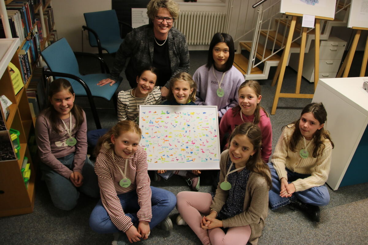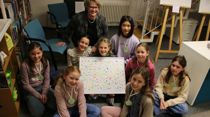 Tina Holder und die »Kalligfräfchen« stellen ihr geschriebenen Kunstwerke in der Bücherei aus