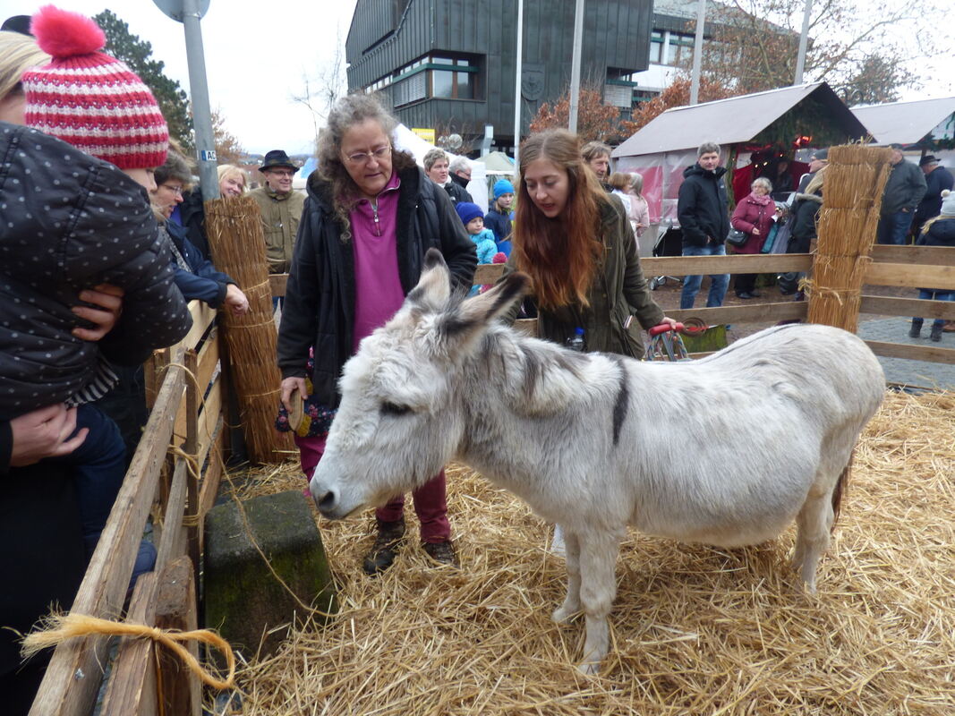 Jacky der Esel war der Liebling auf dem Weihnachtsmarkt in Pliezhausen. Nicht nur bei den Kindern. Er ließ sich von allen gerne streicheln.
