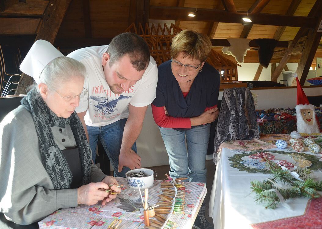 Schwester Rosemarie Bongartz zeigt das zeitintensive Handwerk des Klöppelns. FOTO: SANDER
