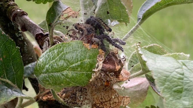 BAD URACH. Gespinstmotten treten immer wieder in Erscheinung. So sind Pfaffenhütchen-Sträucher im Straßenbegleitgrün, wie an der B28 Richtung Bad Urach, regelmäßig befallen und immer wieder mal komplett von Gespinsten umhüllt. Im Obstbau ist die Apfelbaumgespinstmotte seit Jahren keine Unbekannte. Momentan ist der richtige Zeitpunkt, um deren Gespinste zu beseitigen. Die Grünflächenberatungsstelle des Landratsamts informiert und gibt praktische Tipps zum Umgang mit der Apfelbaumgespinstmotte.