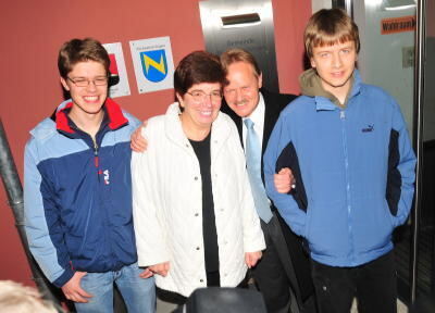 Freude über den Wahlsieg und damit über die zweite Amtsperiode als Bürgermeister von Neckartenzlingen bei Herbert Krüger, Ehefrau Ingeborg und den beiden Söhnen Benjamin und Jonathan.