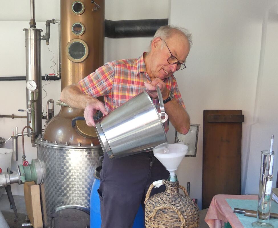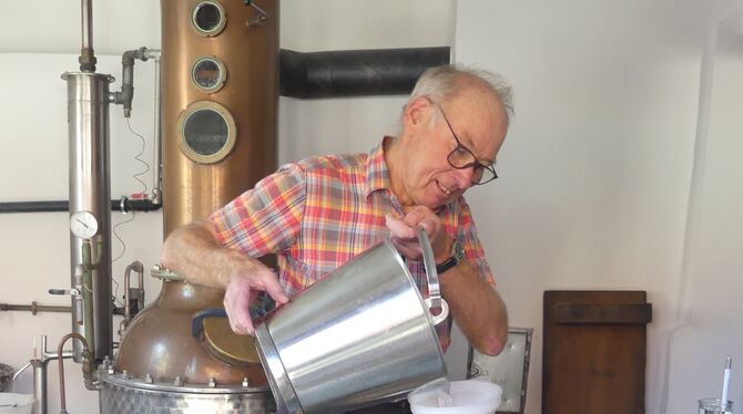 Schaubrennen mit Günther Keppeler: in der wiedereröffneten Kohlberger Brennerei. FOTO: SANDER
