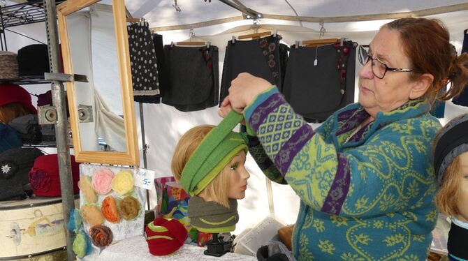 DETTINGEN. Mehr als 70 Marktstände bieten am Wochenende beim 27. Dettinger Kunsthandwerkermarkt eine kreative Auswahl an Dekorativem, Praktischem und Geschenkideen: von bunten Wind-rädern über Schmuckvielfalt bis zu Gebrauchsgegenständen aus Albhölzern und wärmender Bekleidung ist im Ortskern alles Mögliche zu finden.