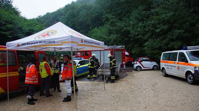 In der Falkensteiner Höhle zwischen Grabenstetten und Bad Urach hatten steigende Wassermassen am Sonntag zwei Höhlengängern den Rückweg ins Freie abgeschnitten und einen Großeinsatz von Rettern ausgelöst. Beide Männer sind inzwischen in Sicherheit.