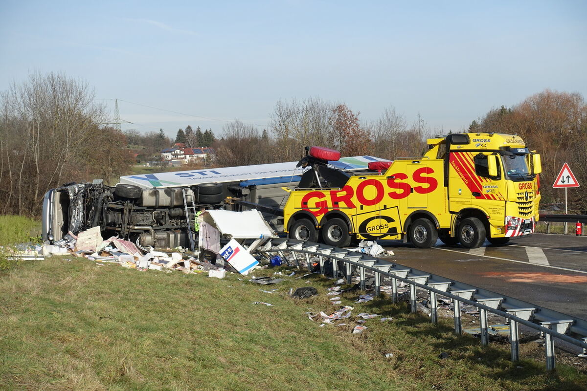 Der Sattelzug war laut ersten Ermittlungen des Polizeipräsidiums Reutlingen auf der B312 von Reutlingen aus in Richtung Stuttgart unterwegs. Am Ende des mehrspurigen Ausbaus nach der Abfahrt Metzingen-West kam er aus noch ungeklärter Ursache nach rechts gegen die Leitplanken. »Beim Gegenlenken ist er dann auf die Gegenfahrbahn gekommen, und dort frontal in einen entgegenkommenden Kleinlaster geprallt und umgekippt«, beschreibt Polizeihauptkommissar Christian Wörner den Unfallverlauf. Ein hinter dem Kleinlaster in Richtung Reutlingen fahrender 52 Jahre alter Ford Kuga-Fahrer konnte nicht mehr schnell genug reagieren und krachte mit großer Wucht in den umgekippten Sattelzug. Der nachfolgende 32-jährige Fahrer einer Mercedes A-Klasse hatte ebenfalls keinerlei Möglichkeiten mehr zu reagieren und prallte unmittelbar darauf gegen den Ford.