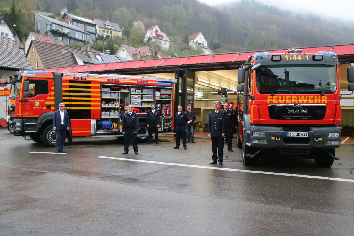Die Uracher Feuerwehr hatte den Brand in der Dachgeschosswohnung auch dank ihrer zwei neuen Tanklöschfahrzeuge schnell unter Kontrolle.