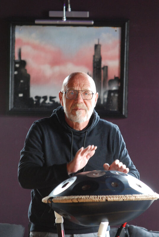 Metzingens Noch-Jugendhausleiter Uwe Noppel mit seiner Handpan, der er meditative Klänge entlockt. Ins Jugendhaus bringt er die Metalltrommel eher selten mit, obwohl die Klänge auch dort ankommen. »Cool, das lässt einen relaxen«, schwärmte ein Junge. FOTO: PFISTERER